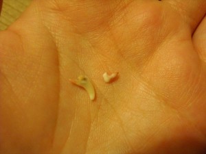 Nous pensions ne retrouver aucune de ses dents de lait. La plupart du temps elles doivent sans doute être avalées lors des repas ou peut-être qu’elles tombent après avoir mastiqué des jouets comme cela est arrivé ce soir.