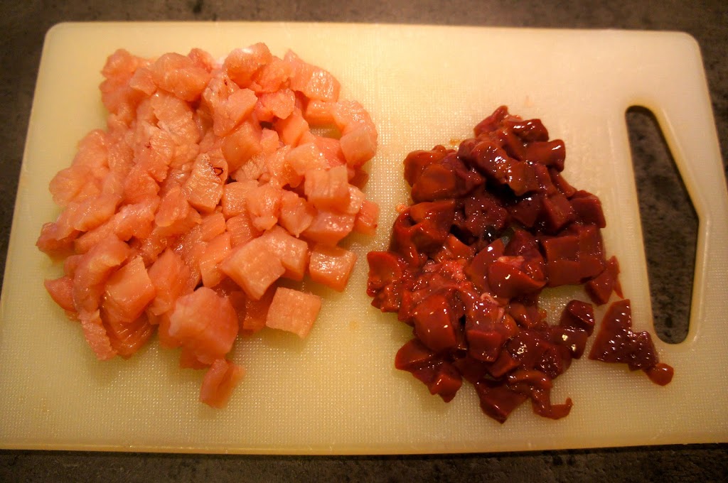 - Couper la dinde et le foie en petits dés afin un couteau bien aiguisé